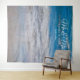 Décoration de mariage bleu et blanc de style plage. Tapisserie de toile de fond de photobooth de réception tropicale aux vagues océaniques estivales nautiques. Bannière personnalisée élégante, chic, tendance, moderne et cool. Monsieur et Madame, les noms et la date en typographie blanche peuvent être modifiés. Image copyright Marg Seregelyi Photographie.