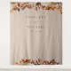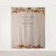 Cette tapisserie de mariage élégante | fond de photomaton présente des feuilles de couleur orange brûlé et de terre cuite peintes à l'aquarelle, des dahlias crème et beige, et de belles roses de couleur rouille sur un fond taupe avec les noms des mariés et la date du mariage. Trouvez des articles assortis dans la collection Taupe Automne Romance.