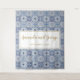 Elégant décor de mariage avec carrelage bleu, personnalisé avec vos noms et votre date.