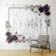 Créez les photos de réception parfaites avec ce design de tapisserie tendance mettant en vedette des éléments botaniques floraux violets prune et eucalyptus, des éléments de coin en poussière d'or faux, un cadre violet prune et un fond en marbre de carrera faux. Parfait pour les mariages d'automne et d'hiver. Copyright Elegant Invites, tous droits réservés.