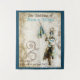 Tapisserie de conte de fées Renaissance mariage, dans un style turquoise en cuir bleu, avec des graphiques en papier ancien, avec un chevalier blindé à cheval. Personnalisez le texte pour votre jour de mariage.