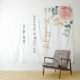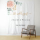 Un arrière - plan blanc chic. Décoré d'un or rose et rose pastel (rose) feuilles d'eucalyptus, sprigs, verdure et feuilles faux or. Personnalisez et ajoutez le nom du marié et une date. Lettres noires et dorées. Peut être utilisé comme bannière de bienvenue mariage, comme décoration murale de fête ou comme fond de cabine photo.
