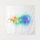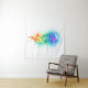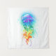 Grande méduse irisée, artistiquement dessinée, brillante, avec de longues tentacules sur le blanc, peinte sur l'arrière - plan multicolore. Méduse arc-en-ciel.