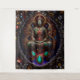 L'image représente une représentation complexe et ornée d'une figure assise, peut-être une divinité ou une icône spirituelle, ornée de nombreux bijoux colorés et de motifs élaborés. La figure est placée contre un arrière - plan cosmique rempli de couleurs tourbillonnantes et vibrantes et d'éléments célestes, lui donnant une apparence mystique et autre mondaine. Le visage de la figure est flou ou obscurci. Le design général est très détaillé et captivant visuellement, ce qui en fait une oeuvre d'art intéressante qui combine des éléments de spiritualité et d'imagerie cosmique.