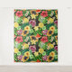 Tenture Mix-fruits tropicaux, fleurs et feuilles en noir