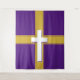 Moderne, croix OR minimaliste sur un fond VIOLET riche. Il y a une simple croix blanche incorporée à l'or. Si vous attachez des poids aux coins (non inclus), la tapisserie de très grande taille pourrait éventuellement également être utilisée comme NAPPE MORTUAIRE ou COUVRE-CERCUEIL lors d'un enterrement. D'autres couleurs et versions sont disponibles.