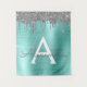 Tapisserie de monogramme et initiale en métal brossé avec paillettes métallisées argent et sarcelle bleu aqua. C'est le cadeau parfait pour un 16e anniversaire, un mariage, une douche de mariée, un anniversaire de mariage, une baby shower ou une soirée d'enterrement de vie de jeune fille pour quelqu'un qui aime le luxe clinquant et les styles chics.