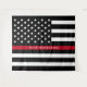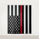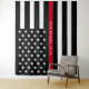 Cette tapisserie qui peut être utilisée comme arrière-plan photo pour des occasions spéciales telles que la retraite des pompiers ou les fêtes d'anniversaire, présente un drapeau américain Thin Red Line de pompier noir et blanc ainsi qu'un nom d'officier pour que vous puissiez personnaliser. Conçu par l'artiste de renommée mondiale ©Tim Coffey.