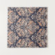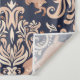 Motif symétrique sans couture dans le style Damask. Des lièvres qui sautent, un ornement de plante dans les tons beiges sur un arrière - plan bleu foncé.