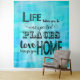 Citation de typographie abstraite aquarelle bleu aqua surf hawaïen. La vie vous emmène dans des endroits inattendus. L'amour vous ramène à la maison.