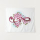 Pink treble clef with delicate, detailed pink Japanese cherry blossoms against white background painted over with light blue paint Blooming pink sakura.