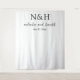 Fond photo mariage moderne avec un design simple et minimaliste noir et blanc avec votre monogramme en caractères gras avec vos noms dans un élégant script d'écriture et votre date de mariage.