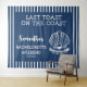 tapisserie de la soirée bachelorette à thème nautique bleu marine et blanc avec coquille et perle est parfait comme fond de photo de la fête bachelorette. Avec le slogan "dernier toast sur la côte". Célébrez votre douche nuptiale avec le thème parfait de la fête nautique de plage, le thème parfait pour la nostalgique mariée de marin vintage et ses demoiselles d'honneur.