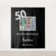 Une tapisserie pour une fête d'anniversaire de 50 ans. Fond noir, texte blanc. Personnalisez et ajoutez une photo de haute qualité, du texte, un nom et une date. Le numéro 50 est écrit avec une police de style ballon argenté faux. Peut être utilisé comme décoration murale pour la fête ou comme toile de fond pour un photomaton.