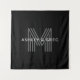 Tenture Nom rétro moderne modifiable monogramme noir et gr