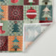 Nostalgic Vintage Patchwork Quilt - Embrassez ce design de style champêtre à l'ancienne Dans les couleurs et les designs de Noël des Fêtes, cela imite le vieux style de Noël Quilts Grand-mère. Arbres de Noël, ornements et bas apparemment collés sur des Carrés arrière - plans motifs et ils semblent être cousus ensemble dans un motif de courtepointe patchwork. Les couleurs sont le vert du pays, les rouges du pays et les or. Parfait pour passer les vacances au cabine.