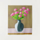 Tapisserie dans un Boho, image d'art moderne minimaliste d'oeillets roses dans un vase noir et blanc
