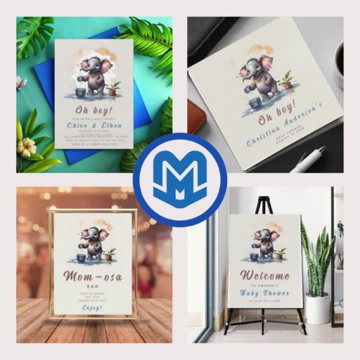 Oh Boy Elephant Rustic Gold Blue Baby ShowerConçu par Max Marshall