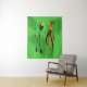 Art vectoriel coloré d'une paire d'oiseaux exotiques fictifs de paradis avec de longues plumes de queue et un plumage lumineux sur une jungle verte comme arrière - plan.