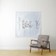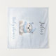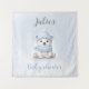 Tapisserie de fond adorable pour le baby shower garçon d'hiver en bleu, blanc et gris doux avec l'ours polaire bébé le plus heureux dans un casquette bleu et foulard. Personnalisez facilement le texte. - Kate Eden Art