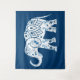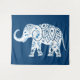 Stunning ethnic art tapestry with decorative henna tattoo style elephant on dark blue background. Option to customize background color to match your decor.