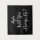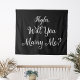 Panneau de proposition de mariage surprise avec nom en noir et blanc. Superbe bannière de fond pour poser la question à votre petit ami ou petite amie.