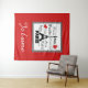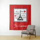 Illustration de design de texte parisien avec tour Eiffel et décoration de coeurs rouges en carré noir et blanc sur arrière - plan rouge