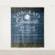 Un élégant stand de photo de graduation avec les détails de votre grad ensemble dans la typographie chic sur un bleu rustique bois et or parties scintillant arrière - plan. Conçu par Thisisnotme©