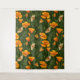 Tenture Pavot de Californie et papillons de nuit sur vert