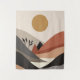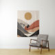 Paysage Abstrait boho mur art .Moderne boho nature paysage avec soleil, ciel, rivière, et montagnes