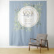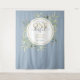 Petit M. ONEderful premier anniversaire photo stand arrière avec élégante verdure sur un arrière - plan bleu garçon et typographie élégante. Conçu par Thisisnotme©