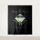 Un bouillonnant papillon de nuit vert est entouré de phases de lune et de feuilles verts luxuriants contre un arrière - plan noir profond.