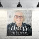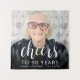 Cette tapisserie personnalisée pour les 90 ans du invité d'honneur comporte sa photo personnalisée, son nom et sa date d'anniversaire, ainsi que le mot "Cheers" dans une élégante écriture calligraphique blanche. Un écran sombre aide à faire ressortir le texte. Une excellente façon de célébrer quelqu'un qui fête ses quatre-vingt-dix ans !