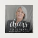 Cette tapisserie de 70ème anniversaire personnalisée présente l'invité d'honneur photo, nom, et anniversaire, ainsi que le mot "Cheers" dans élégant script de calligraphie blanche. Un écran sombre permet de faire apparaître le texte. Une excellente façon de célébrer quelqu'un qui fête ses soixante-dix ans !