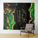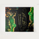 Étonnez vos amis avec un fond photographique amusant comme divertissement pendant votre réception de mariage et la soirée après-mariage. Sophistiqué, original et unique. De belles teintes de bijoux en noir onyx, vert émeraude et or. Les couleurs tourbillonnent et se mélangent, créant un abstrait original à l'encre alcoolisée par l'artiste internationale Pauline Benjes. Tapisserie de mariage verte et noire avec calligraphie dorée personnalisée. Consultez nos collections pour d'autres œuvres d'art magnifiques. Ce produit correspond à notre collection de mariage vert émeraude et bronze.