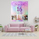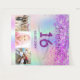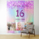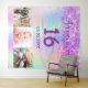 Pour un Sweet 16, fête des 16 ans. Un collage de 3 de vos photos d'elle, amis, famille, centres d'intérêt ou animaux de compagnie. Un fond de couleur holographique arc-en-ciel en violet, rose, or rose et vert menthe. Décoré de paillettes fausses violettes. Personnalisez et ajoutez son nom, âge 16 ans et une date. Date de naissance ou date de la fête d'anniversaire. Texte de couleur violette. Parfait pour une fête surprise ! Utilisez comme bannière de bienvenue, décoration murale ou comme toile de fond pour photomaton.