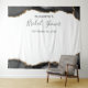 Cette élégante tapisserie de photobooth pour mariage présente une bordure d'agate noire et dorée en haut et en bas sur fond blanc. Personnalisez le texte gris charbon avec les mots "Mariage" (ou événement de votre choix) en écriture manuscrite, ainsi que le nom de la future mariée et la date en police copperplate.