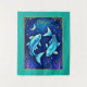Tapestry in a Pisces illustration featuring two turquoise blue fish swimming in opposite directions against a starry, deep blue background. A crescent moon and stars enhance the celestial theme, evoking the imaginative spirit of the Pisces zodiac sign.