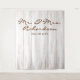 Fond de planches de bois de grange blanches vieillies rustiques, avec une typographie de script simple et élégante pour le nom de famille personnalisé M. et Mme ; combiné avec une typographie serif pour une date personnalisable. C'est un design intemporel réalisé spécifiquement pour un mariage rustique ou une célébration d'anniversaire.