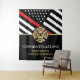 Cette conception comprend un drapeau de pompier avec des rayures noires et blanches, ainsi qu'une fine bande rouge. "Félicitations" et l'insigne d'un pompier est au-dessus du nom du pompier diplômé. Cette conception fonctionne également bien pour les pompiers, les lieutenants ou les chefs qui prennent leur retraite. Fêtez dans le style !