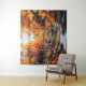 Peinture pittoresque d'un pont en pierre au-dessus d'un ruisseau qui coule, entouré d'un feuillage automnal vibrant.