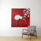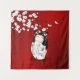 Tenture Poupée Kokeshi Rouge Noir Blanc Cerisier Fleurs