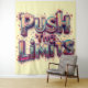 Cette superbe tapisserie présente un fond jaune vibrant et crémeux, créant une atmosphère lumineuse et accueillante. La phrase motivante "Push The Limits" est mise en valeur dans une typographie moderne et saisissante qui ressemble à du néon, avec des lettres carrées semblables à du verre qui apparaissent dimensionnelles et colorées. Les lettres grasses et transparentes ressortent sur le fond, créant un contraste saisissant qui attire l'attention et inspire l'action.
