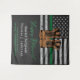 Ajoutez la touche finale à votre parti de retraite militaire grâce à ces bannières et fournitures militaires de design usagées et à cette fine ligne verte. Drapeau américain dans la conception de couleurs militaires. Cette petite bannière rustique de la ligne verte est parfaite pour une fête de retraite militaire, des déploiements militaires, une fête de bienvenue militaire, la remise des diplômes militaires et des soldats qui partent. Parfait pour tous les militaires, l'armée, la protection de la frontière, la patrouille frontalière, l'agent de conservation, le garde du parc, le garde du gibier, l'application de la loi fédérale. Personnalisez cette invitation de drapeau américain avec votre nom de soldats et votre message personnel. Consultez notre collection pour obtenir des cadeaux de retraite, des cadeaux d'obtention de diplômes militaires, des faveurs de parti et des fournitures. DROIT D'AUTEUR © 2021 Judy Burrows, Black Dog Art - Tous droits réservés. Retraite militaire Cuir mince Ligne verte Tapisserie de l'armée