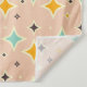 Retro geometric pattern with teal, orange, and black star-shaped diamonds on a peach background. The design conveys a playful, vintage feel.