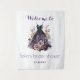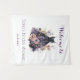 Tapisserie de robe noire avec une fleur violette, parfait pour une douche nuptiale. Robe noire à fleurs violettes, idéale comme tapisserie pour une fête de douche nuptiale.