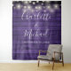 Doté de jolies lampes à cordes et d'un script de signature typographique chic sur un arrière - plan de panneaux de bois violet, ce décor de cabine photo mariage rustique peut être personnalisé avec vos noms et date spéciale. Conçu par Thisisnotme©
