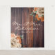 Rustic Dark Bois Planks arrière - plan, avec un magnifique bouquet de fleurs en oranges brûlées et fleurons crème avec des botaniques vert poussiéreux en haut à droite et en bas à gauche coins Élégant typographie script pour le nom de famille personnalisé M et Mme; combiné avec la typographie serif pour personnalisable depuis date. Il s'agit d'un design intemporel conçu spécialement pour un mariage rustique, ou célébration d'anniversaire. Partie de la collection Romance rustique avec des motifs assortis. Crédit photo : Jon Moore de Unsplash, Merci !