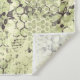 Une base verte à la sauge poussiéreuse est superposée avec une myriade d'éléments graphiques dans différentes opacités, créant profondeur et intérêt visuel.