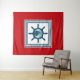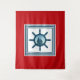 Design à thème nautique avec décoration de scène de voile en carrés rayés sur arrière - plan rouge